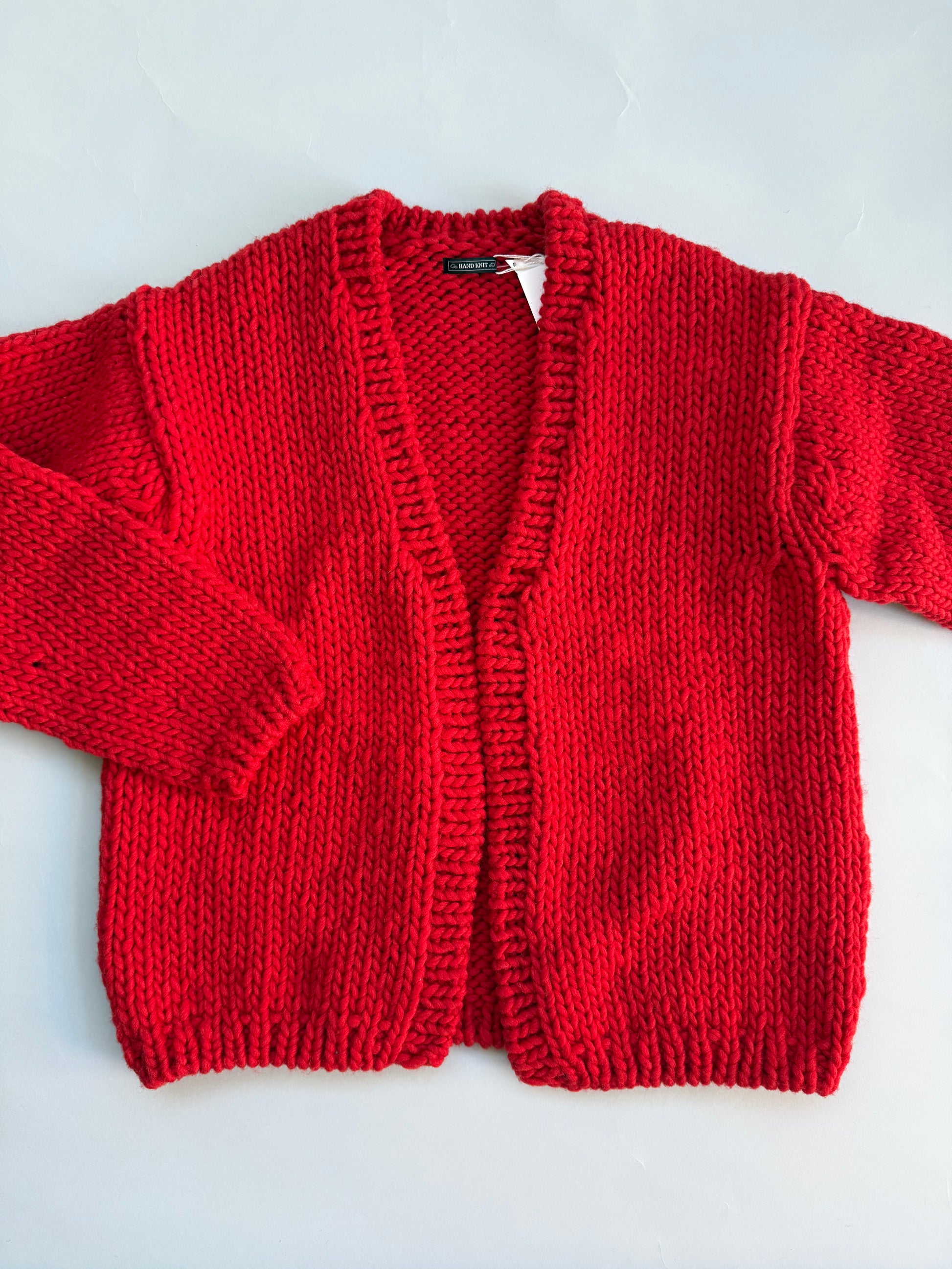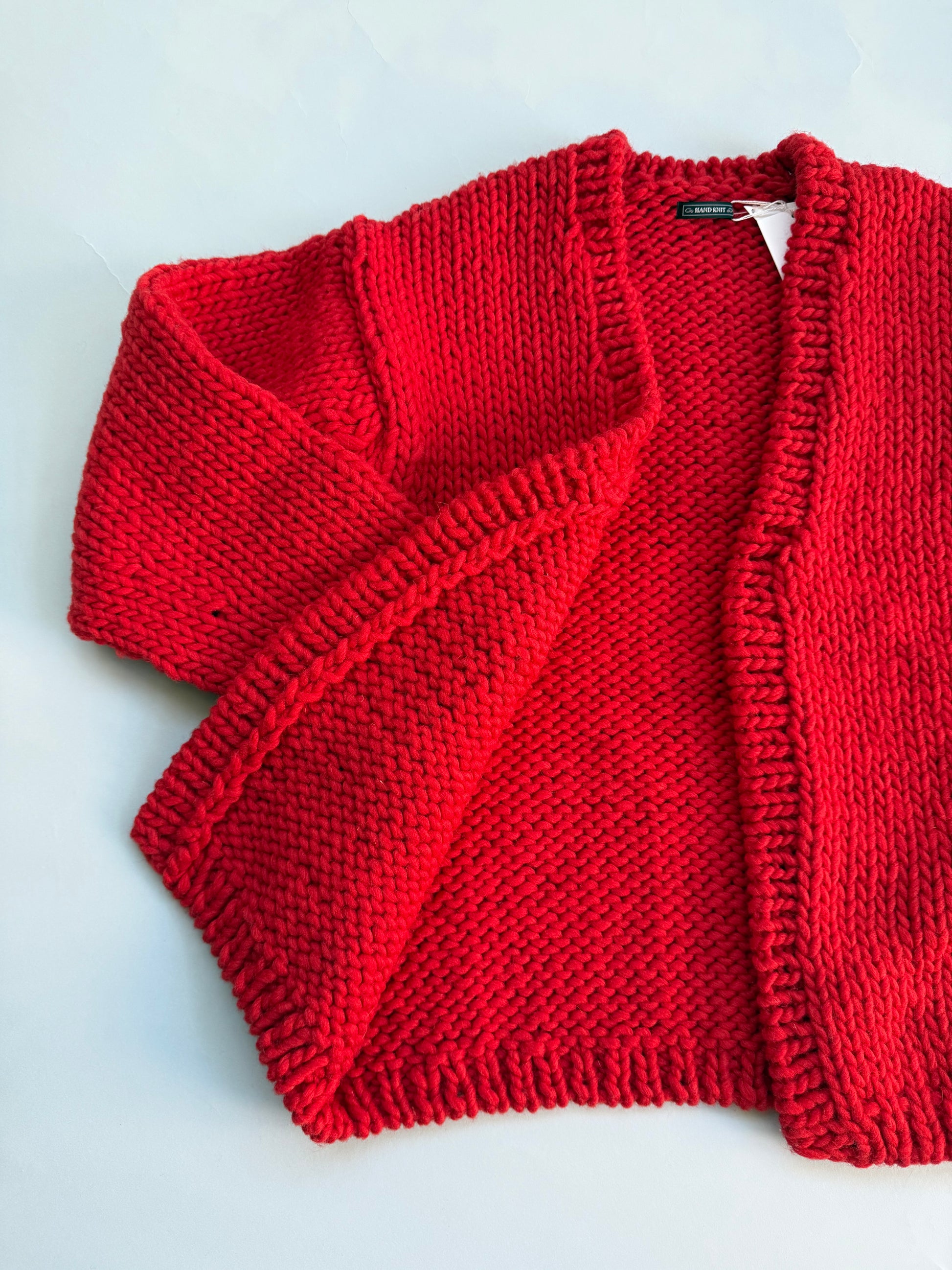 ペルー原産のハンドメイドニットカーディガン。発色の良さと手編みの無骨感はニットならでは表情です。ざっくりシャツやスウェットの上から、またはライトコートの上から羽織るスタイリングにぜひ。