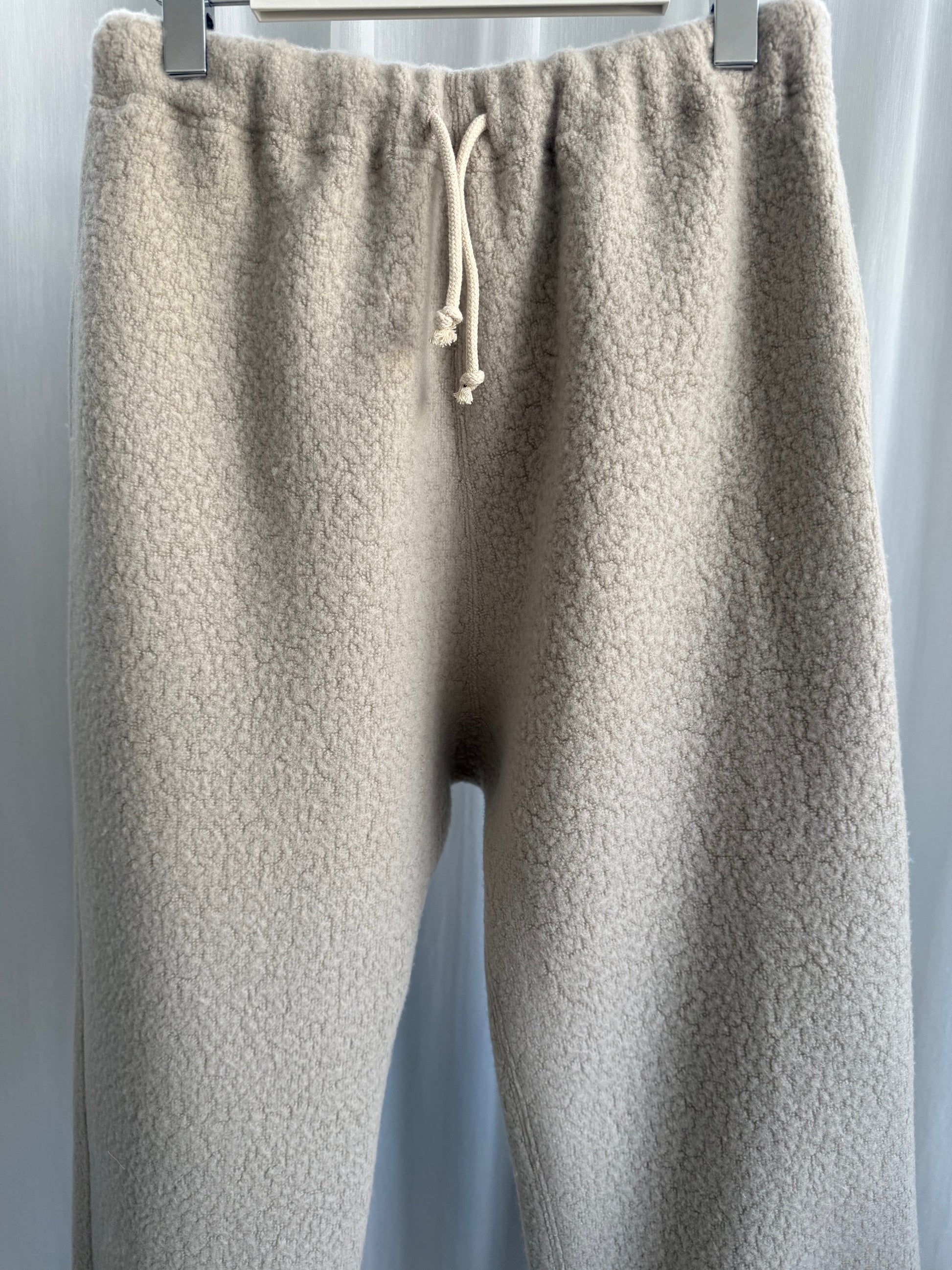 羊の毛のようにモコモコしたボア素材のスウェットパンツ。細過ぎず太過ぎずのシルエットですがヒップからわたりにかけての立体的なフォルムはふっくら可愛いシルエットに。同シリーズからジップフーディも展開しています。