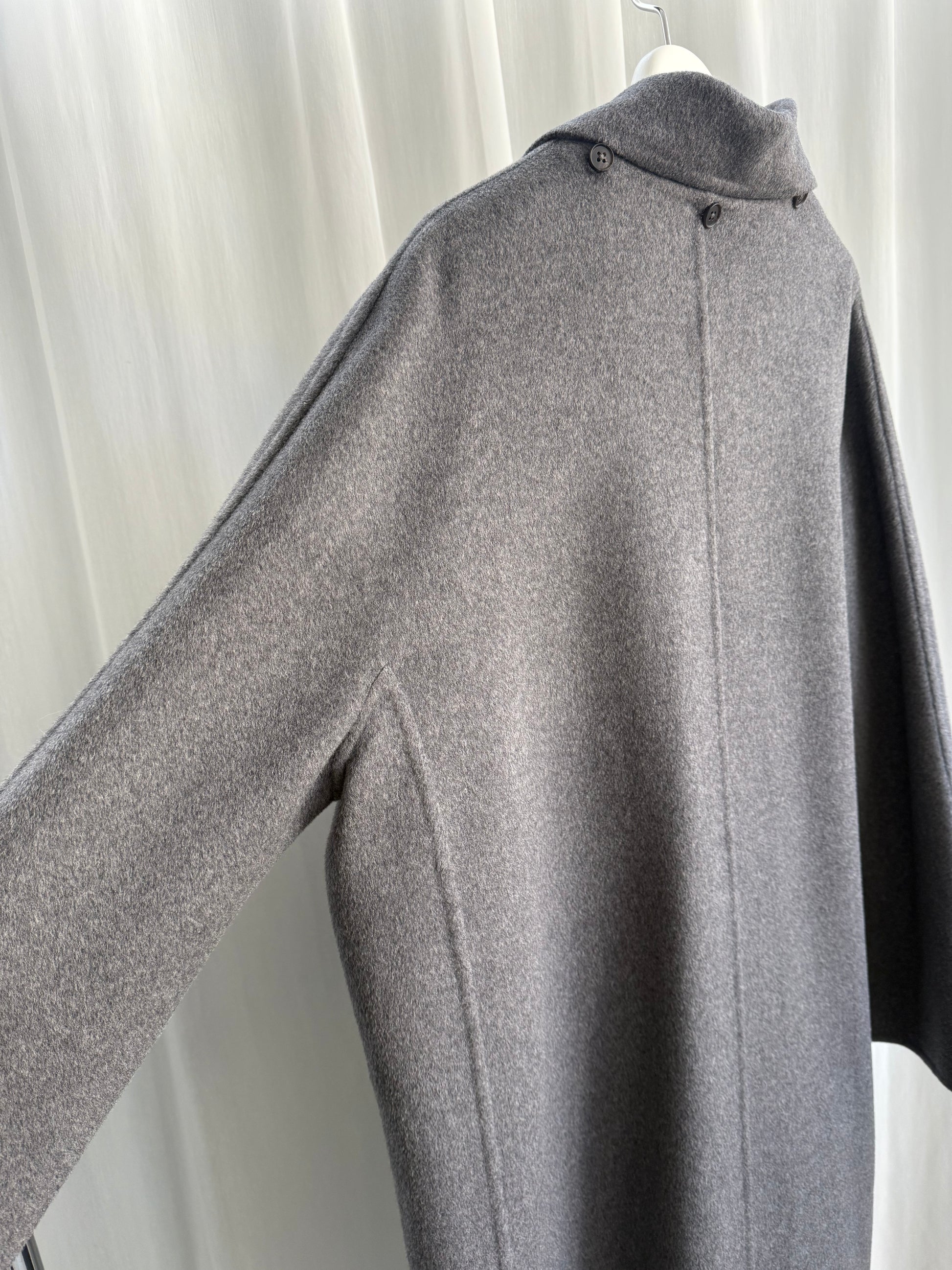seya.の定番として展開している”DOUBLE FACE YAK COAT”の素材違いのダブルフェイスコート。サイドにパネルを施したパターンは立体的ですっきり見えを叶えています。柔らかいシルクウール素材は見た目にも上品で、着心地も柔らかく軽いのも魅力です。